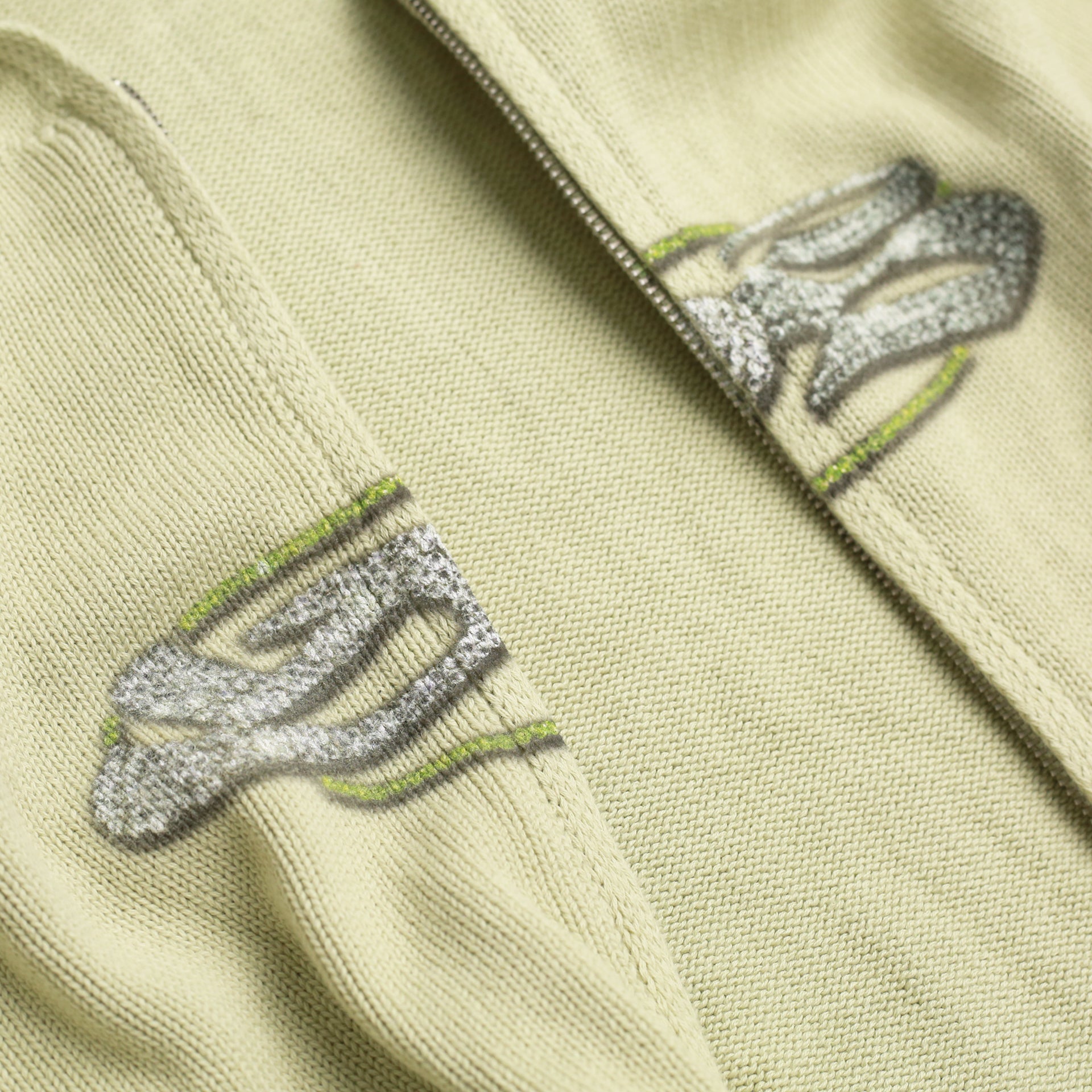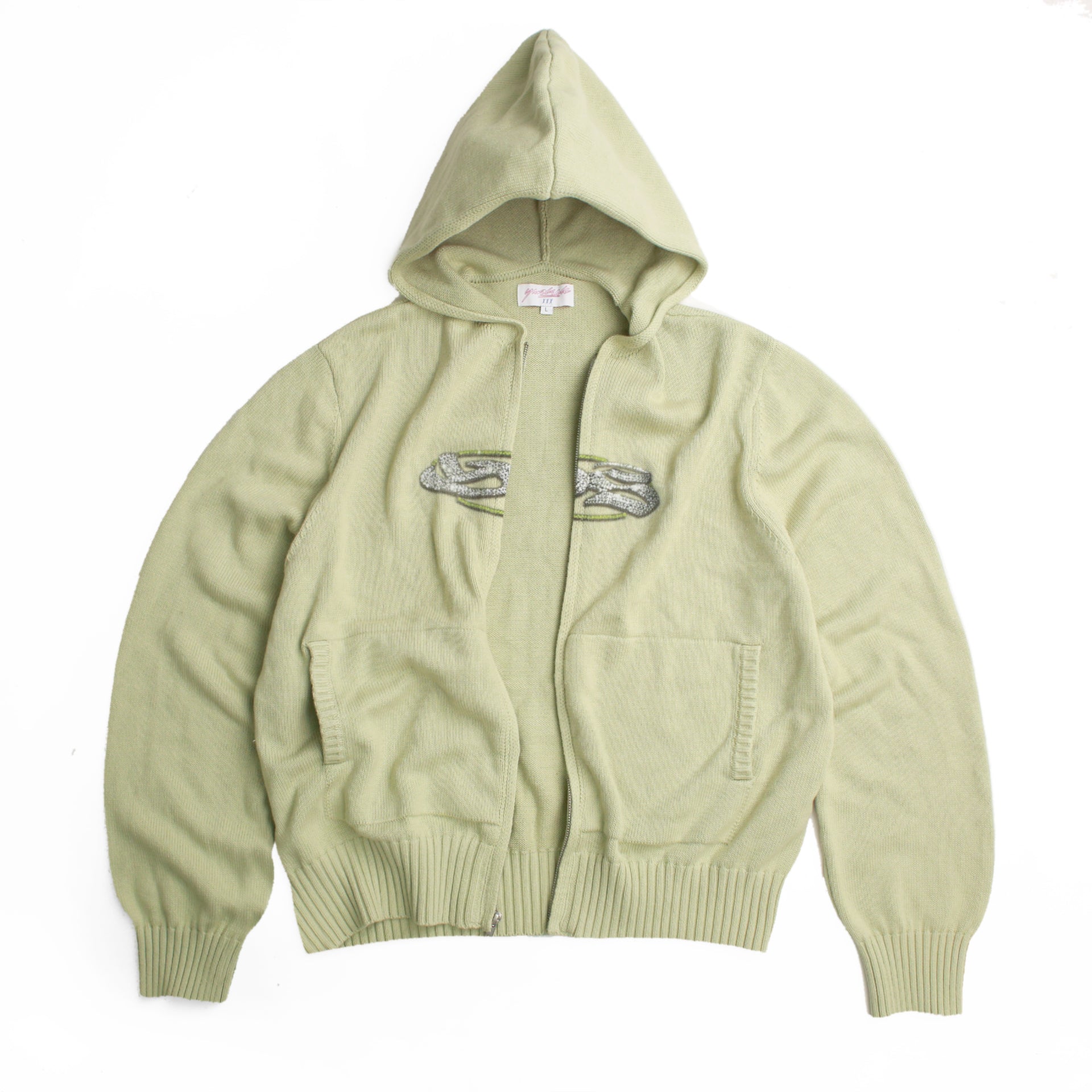 Heavyweight zip-up knitted hooded sweatshirt.
